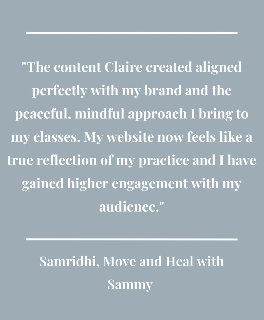 "Good quality copywriters can be difficult to come by, and Claire was able to jump in and adapt to the client's existing voice and tone. Claire's work was first-rate. I wouldn't hesitate to hire her again.." - Jessy Savage, Victoria Digital Marketing