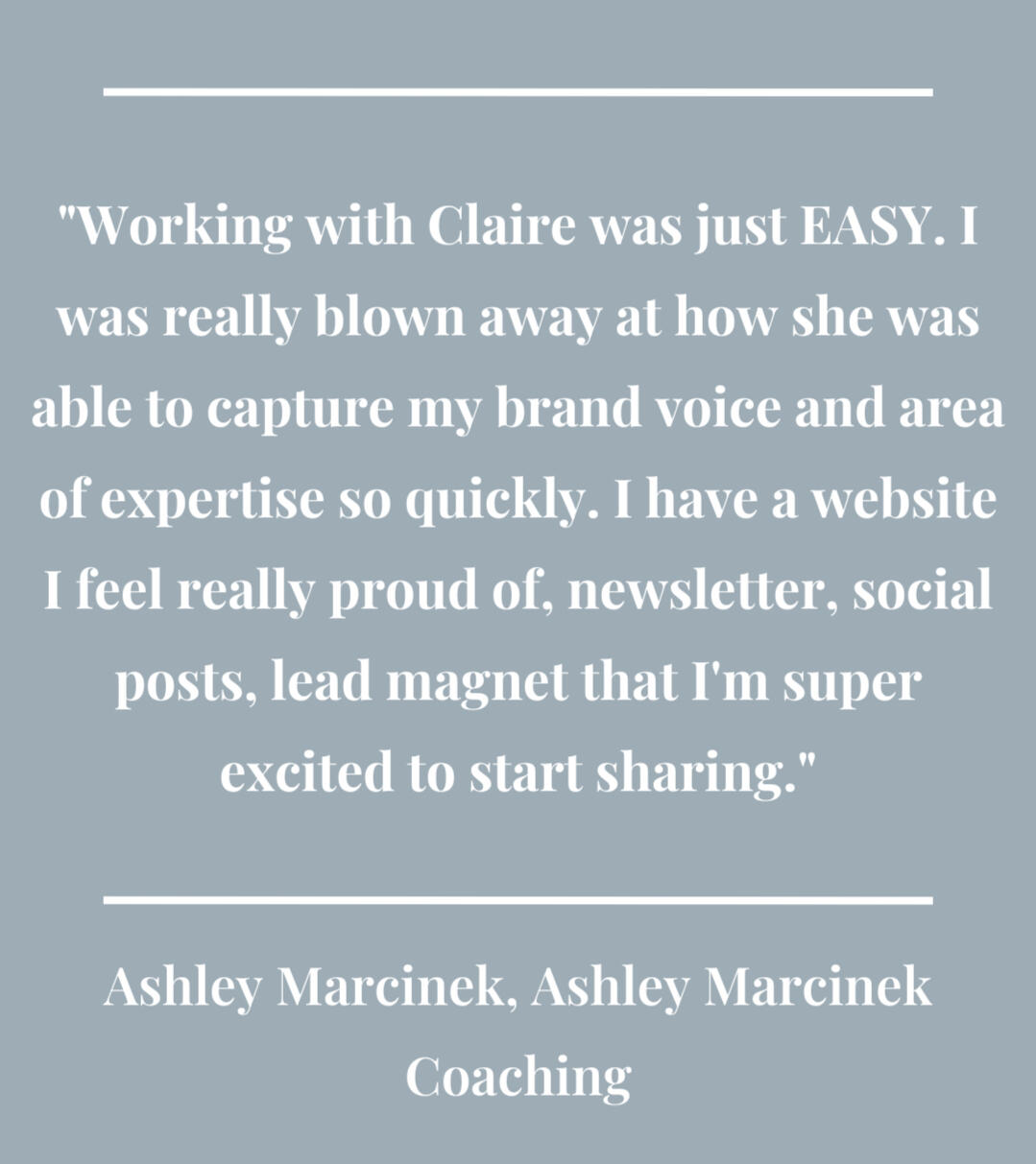 "Good quality copywriters can be difficult to come by, and Claire was able to jump in and adapt to the client's existing voice and tone. Claire's work was first-rate. I wouldn't hesitate to hire her again.." - Jessy Savage, Victoria Digital Marketing